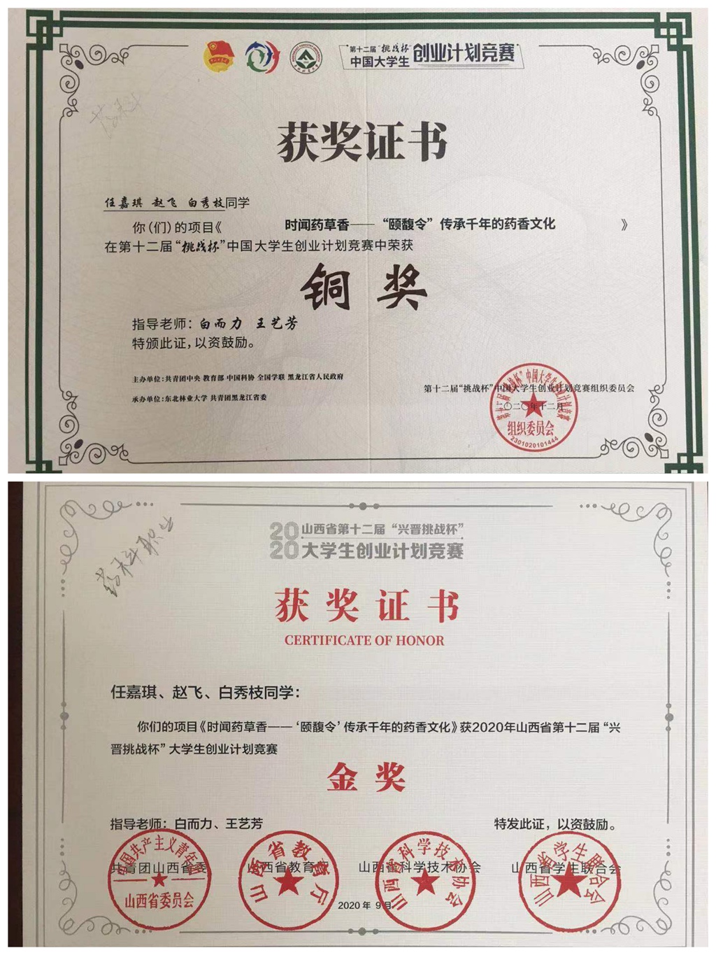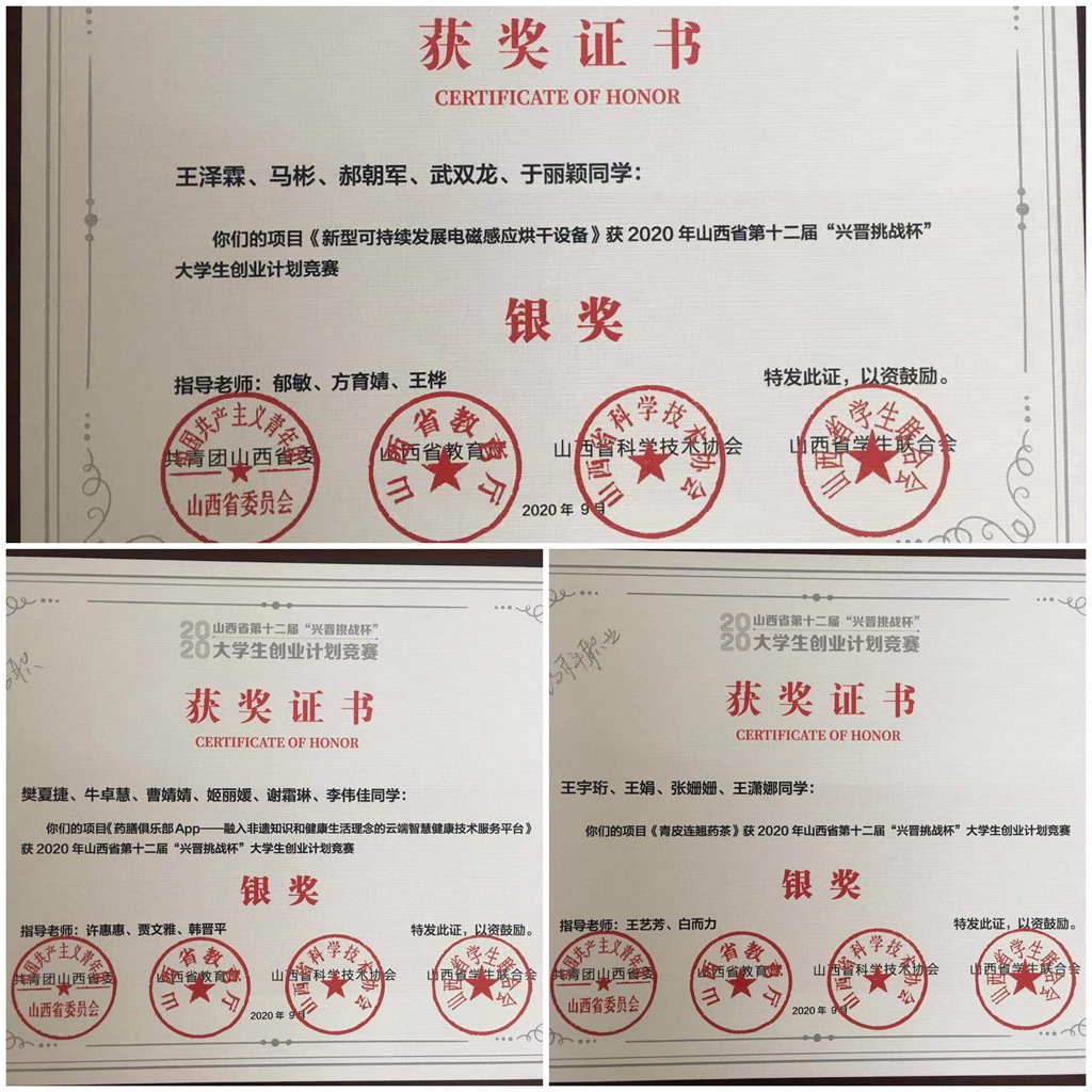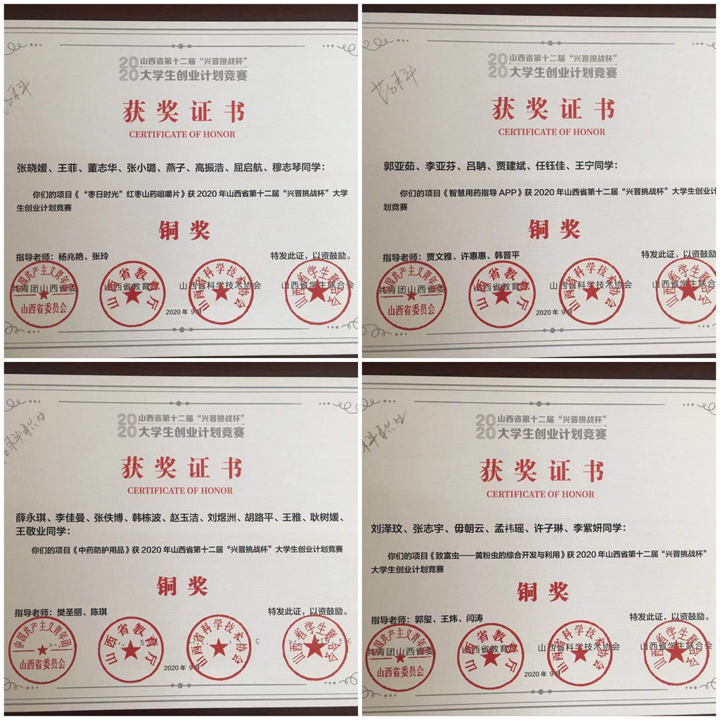 在第十二届“挑战杯”中国大学生创业大赛中,365上市公司官网入口报送15件作品参加省赛,荣获1个金奖,3个银奖,4个铜奖,其中由制药工程系白而力、王艺芳老师指导的参赛作品《时闻药草香-“颐馥令”传承千年的药香文化》首次入围国赛,勇夺铜奖!该项目的获奖创造了365上市公司官网入口参加“挑战杯”大赛以来历史最佳成绩,实现了“挑战杯”国奖零的突破。