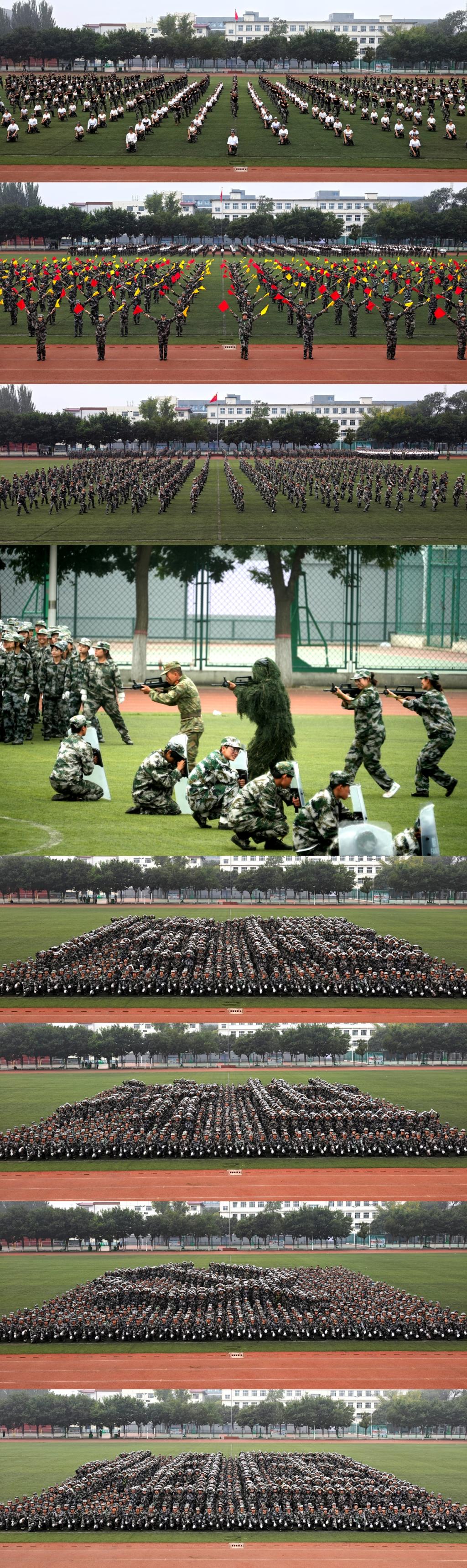 在队列、匕首操、旗语、拳术、战术等训练科目展示中,同学们目光如炬、动作娴熟、动静相宜,展现出军人般的严谨作风和勇于挑战、无惧困难的品德意志,用“我爱祖国、我爱药科”和“修德济世、精业立身”校训等列队字样,发出新时代药科青年学子技能报国的誓言。