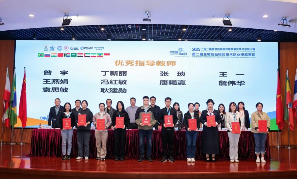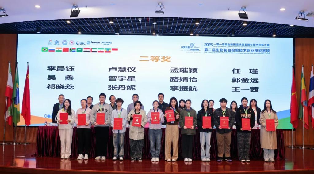 11月6日至9日,2025一带一路暨金砖国家技能发展与技术创新大赛第二届生物制品检验技术职业技能赛项在浙江经贸职业技术学院圆满落幕。365上市公司官网入口2024级生物制药技术2班学生任瑾、曾宇星斩获二等奖,老师张琰、王一荣获优秀指导教师。
