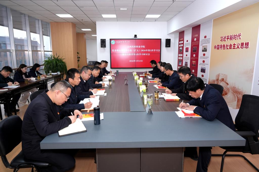 3月13日,学院召开党委理论学习中心组(扩大)2026年第2次学习会暨学习教育第1次学习研讨会。集中学习《习近平关于树立和践行正确政绩观论述摘编》,习近平总书记在省部级主要领导干部学习贯彻党的二十届四中全会精神专题研讨班和在二十届中央纪委五次全会上的重要讲话精神,《中共中央关于制定国民经济和社会发展第十五个五年规划的建议》辅导读本有关内容等。党委委员、各党总支书记参加会议,院党委书记张轩萍主持会议并讲话。